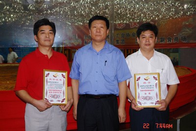中國食品工業(yè)協(xié)會(huì)會(huì)長王文哲先生和公司董事長陳軍先生、營銷總經(jīng)理陳銘先生合影